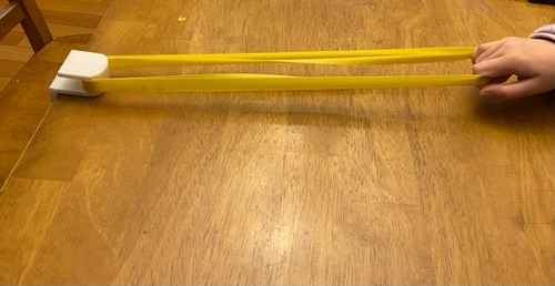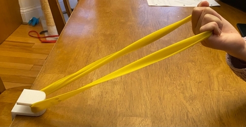 The first part includes our 3D printed prototype that hooks on to your table. It's an S-shape, so one side is hooked on to your table and the other side allows you to hook a loop-band on.